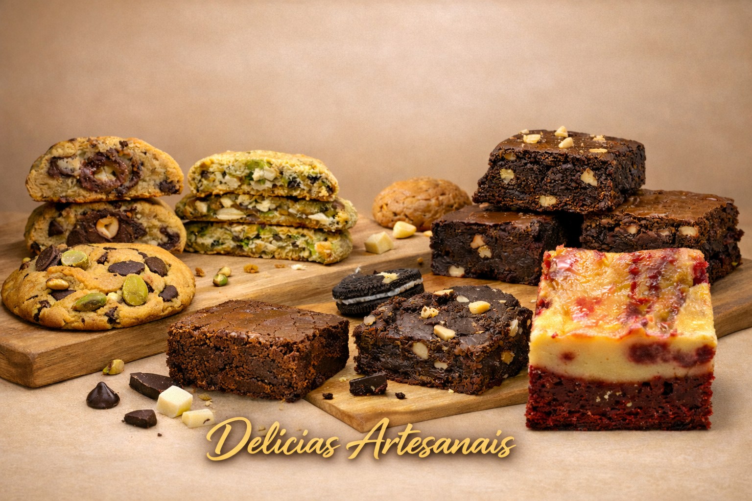 Aqui criamos cookies XL e brownies artesanais, feitos à mão com cuidado, ingredientes de qualidade e muito carinho. Cada doce é preparado para proporcionar momentos de conforto e partilha.